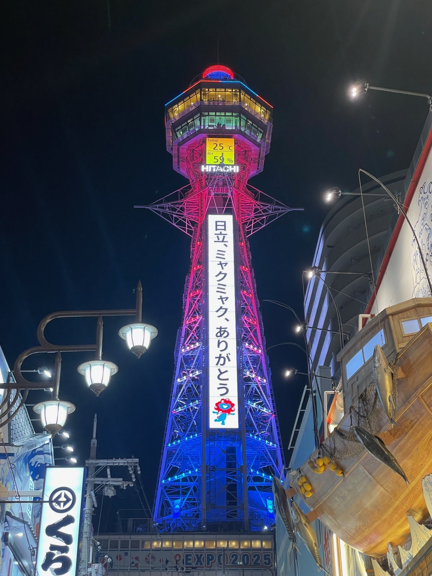 2025年10月1日より、通天閣において大阪・関西万博連動のメッセージをリニューアルしました。今まで大阪・関西万博を一緒に盛り上げてくださった皆さま、来場していただいた皆さまへの感謝のメッセージです。ぜひ通天閣へお立ち寄りください。