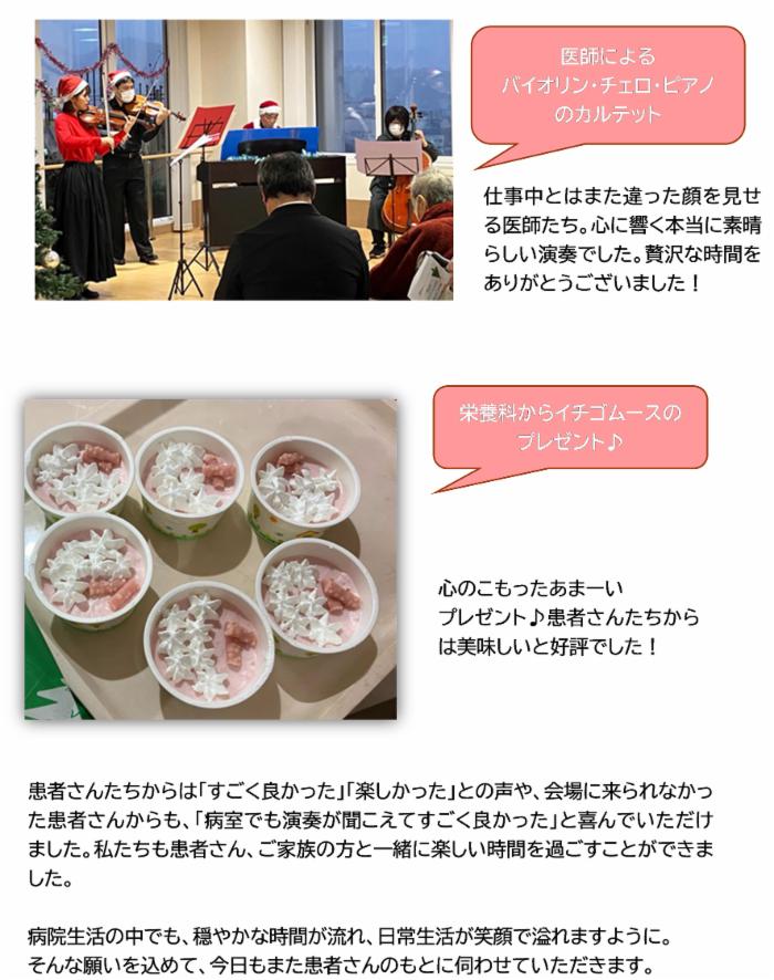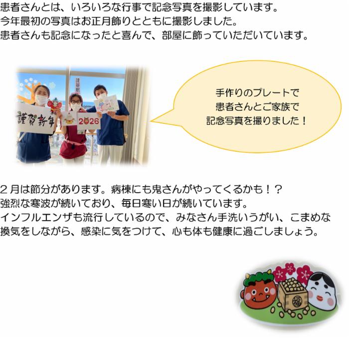 体調の変化に悩まされる患者さんにとって、季節を感じるイベントが少し でも癒しの時間になっていれば嬉しいです。