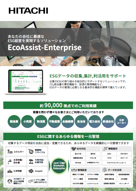EcoAssist-Enterpriseは、あなたの会社に最適なESG経営を実現するソリューションです。ESGデータの収集、集計、利活用をサポートします。