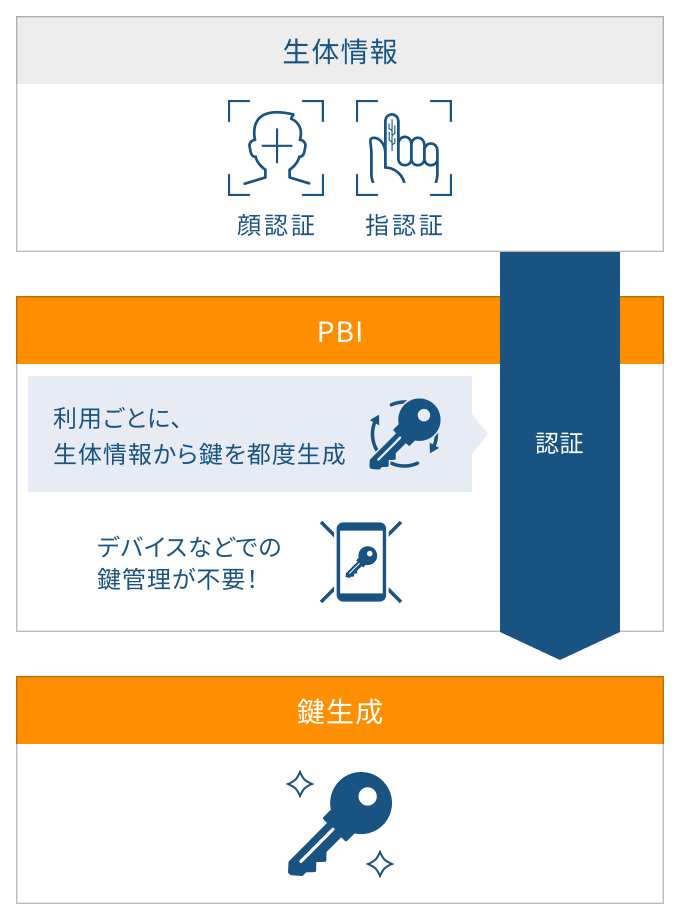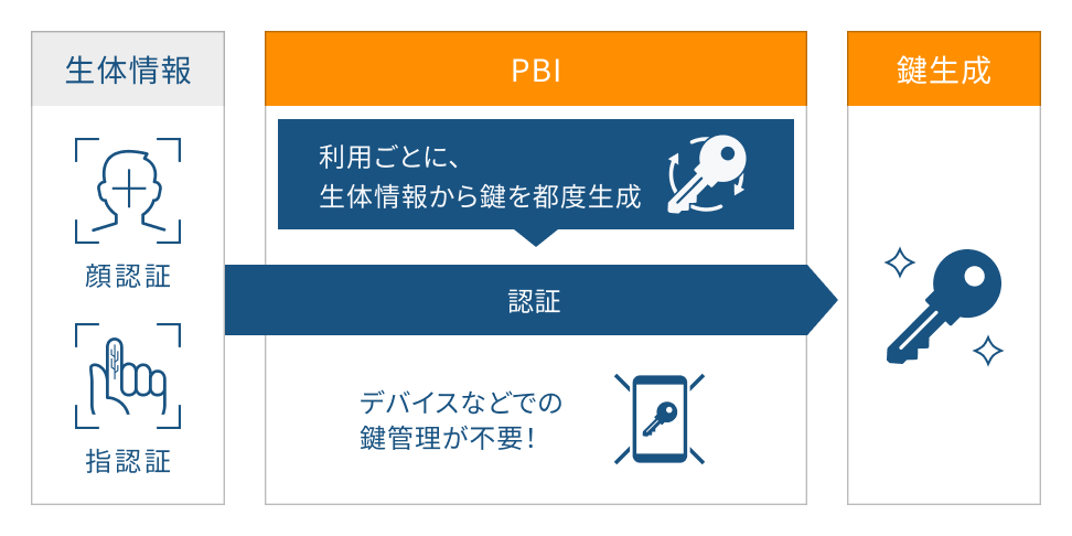 日立のPBIは、認証のたびに生体情報から鍵を生成します。そのため、本人以外が同じ鍵を生成し認証することはできません。