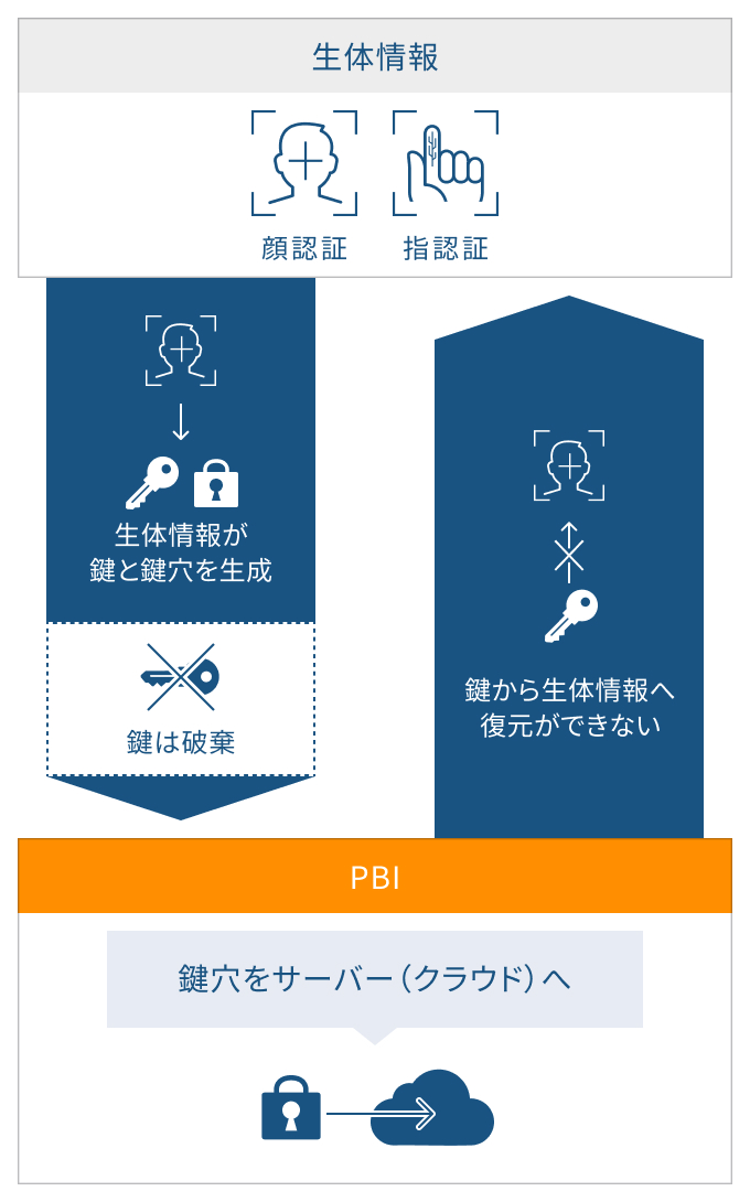 生体認証と機微情報を保護する技術 PBIを組み合わせた、クラウドサービスとして提供される次世代型認証サービス。