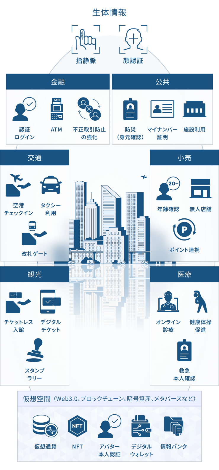 生体認証で一意に特定し、サービス提供などが可能