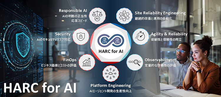 HARC for AIでは、HARCの実績と日立社内で培ったAI運用ノウハウをあわせて、AIを業務に本格適用するお客さま向けにAI特有の運用課題の解決を支援します。