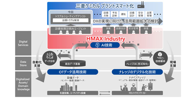 日立と三菱ケミカルが協創、化学プラントにおける設備管理業務のDXに向けて、「HMAX Industry」のAIエージェントを用いたトラブルシューティングアシストの共同検証を開始