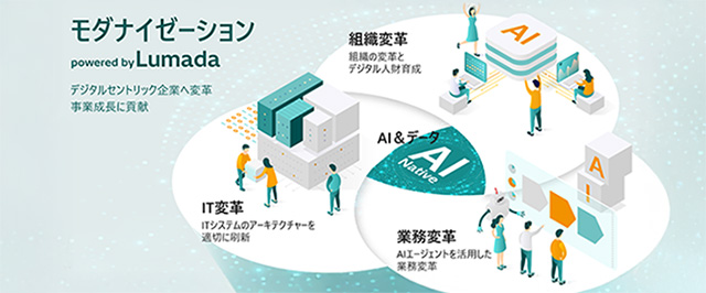 深いドメインナレッジとAI技術・活用ノウハウという強みを集約したLumadaのアセットを生かし、お客さまの業務・IT・組織をデータドリブンで変革するサービスを提供します。