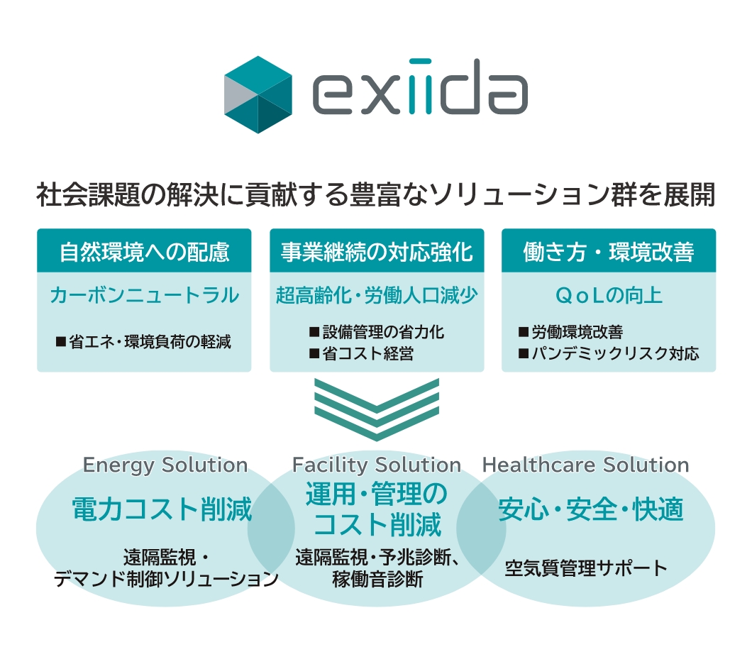 gexiida Remote Monitoring & Predictive Diagnosticsh is an advanced IoT solution that leverages AI technology to support monitoring and planned operation and maintenance management for commercial refrigeration and air conditioning equipment.In addition, the gexiida Remote Monitoring & Demand Control Solutionh uses equipment operating data (such as room temperature) together with weather information to continuously predict power consumption with AI, and controls air conditioning equipment so that power demand does not exceed the target demand level\helping customers reduce electricity costs at their facilities.To help solve social issues through co-creation with customers, we provide a wide range of solutions.