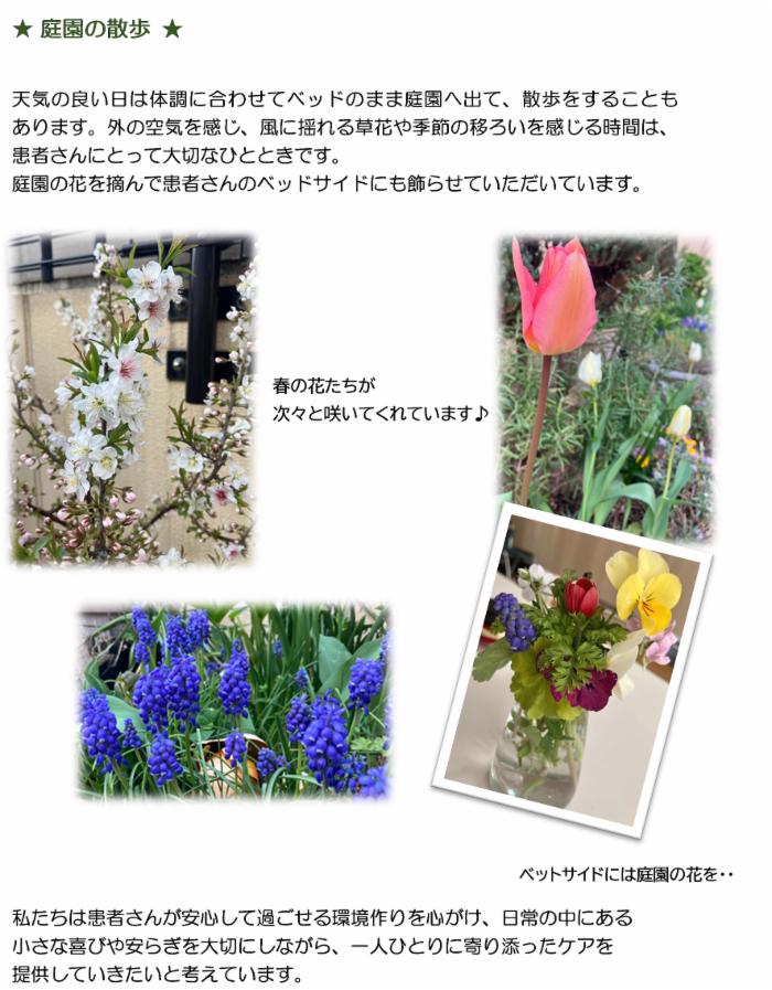 緩和ケアに関する取り組みや日々の様子を、スタッフの声とともにお届けしてまいります。