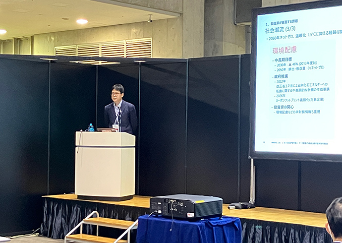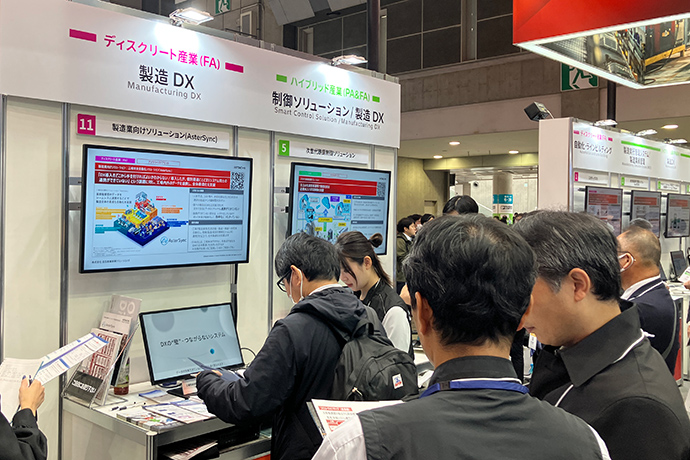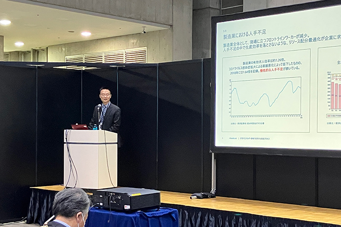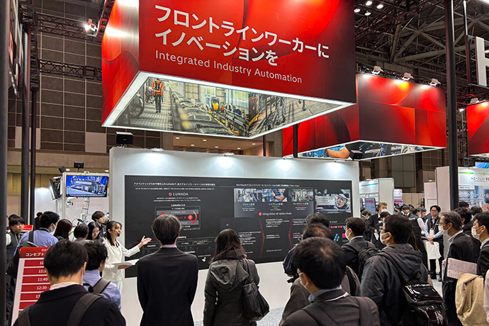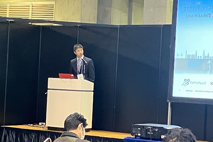 豊富なミッションクリティカルプロダクトのデジタライズドアセットに、ドメインナレッジとAIを掛け合わせたデジタルサービスの展開により、フロントラインワーカーの負担軽減をはじめ、さまざまな生産現場の課題解決に貢献する日立の取り組みを紹介しました。先進ソリューションや、製品の詳しいプレゼンテーションも実施しました。
