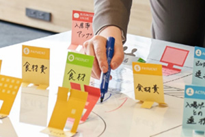 関係者間の価値交換に着目して、サービスアイデアの発想を広げながら、実現性を確認するワークショップ。日立独自のツールを用いて、探索的にアイデアを磨き上げる体験をしていただきます。