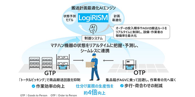 各種マテハン機器の状態をリアルタイムに把握・予測・制御し、仕分け業務の生産性を従来比で約4倍に向上